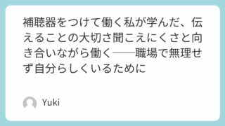 仕事 補聴器をつけて働く私が学んだ、伝えることの大切さ聞こえにくさと向き合いながら働く──職場で無理せず自分らしくいるために